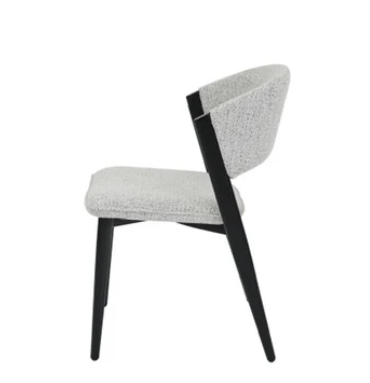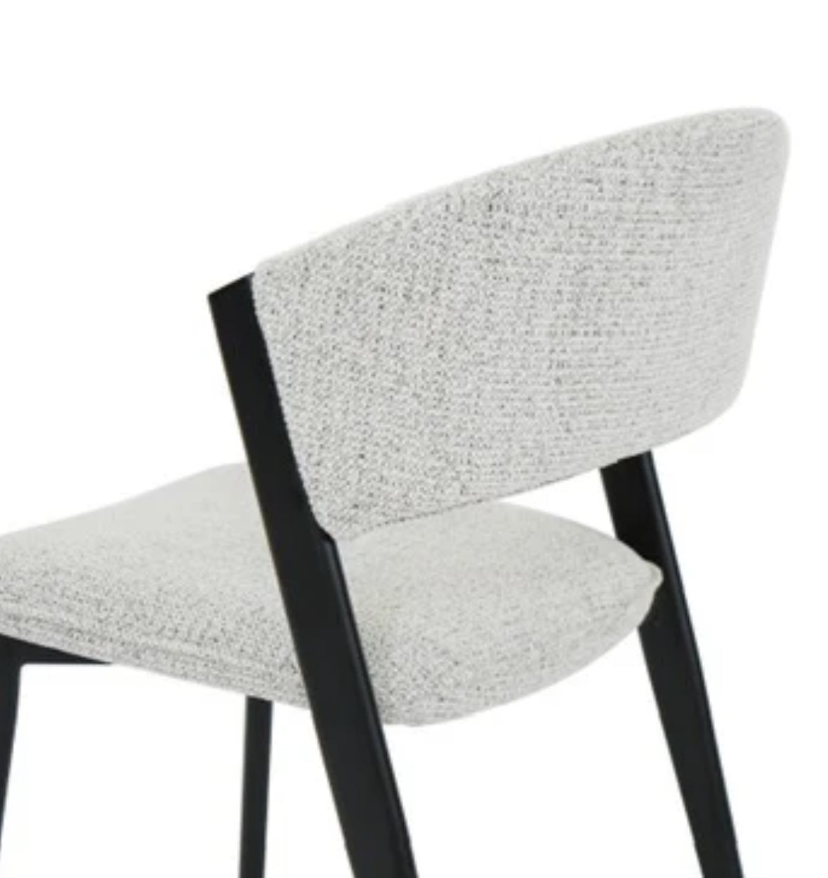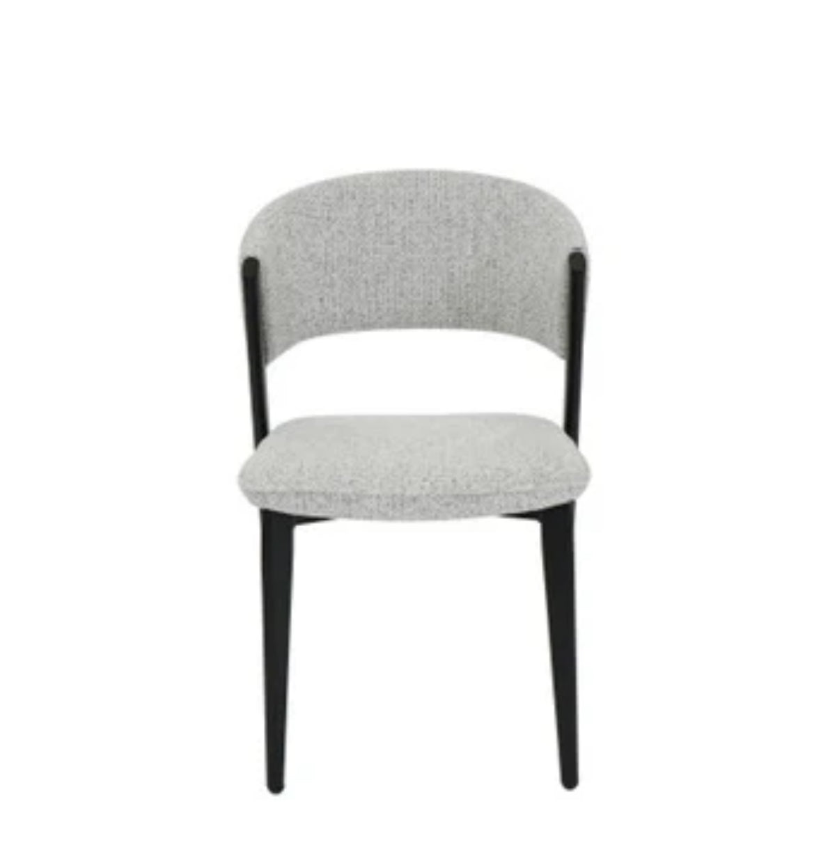 The Titan Dining Chairs, upholstered in a luxurious light grey fabric, this set combines comfort and elegance effortlessly. The chairs’ curved backrests and sleek black legs deliver both style and support, making them ideal for long, relaxed dining occasions.